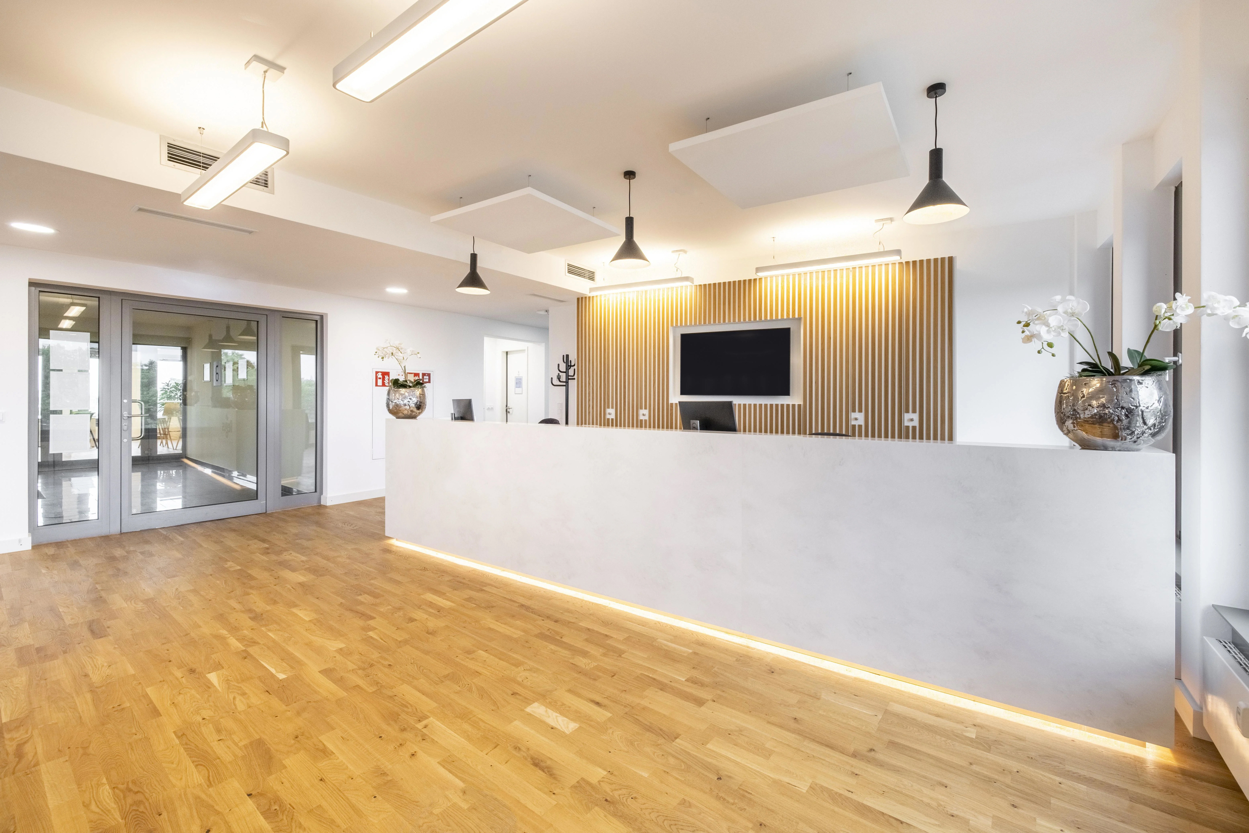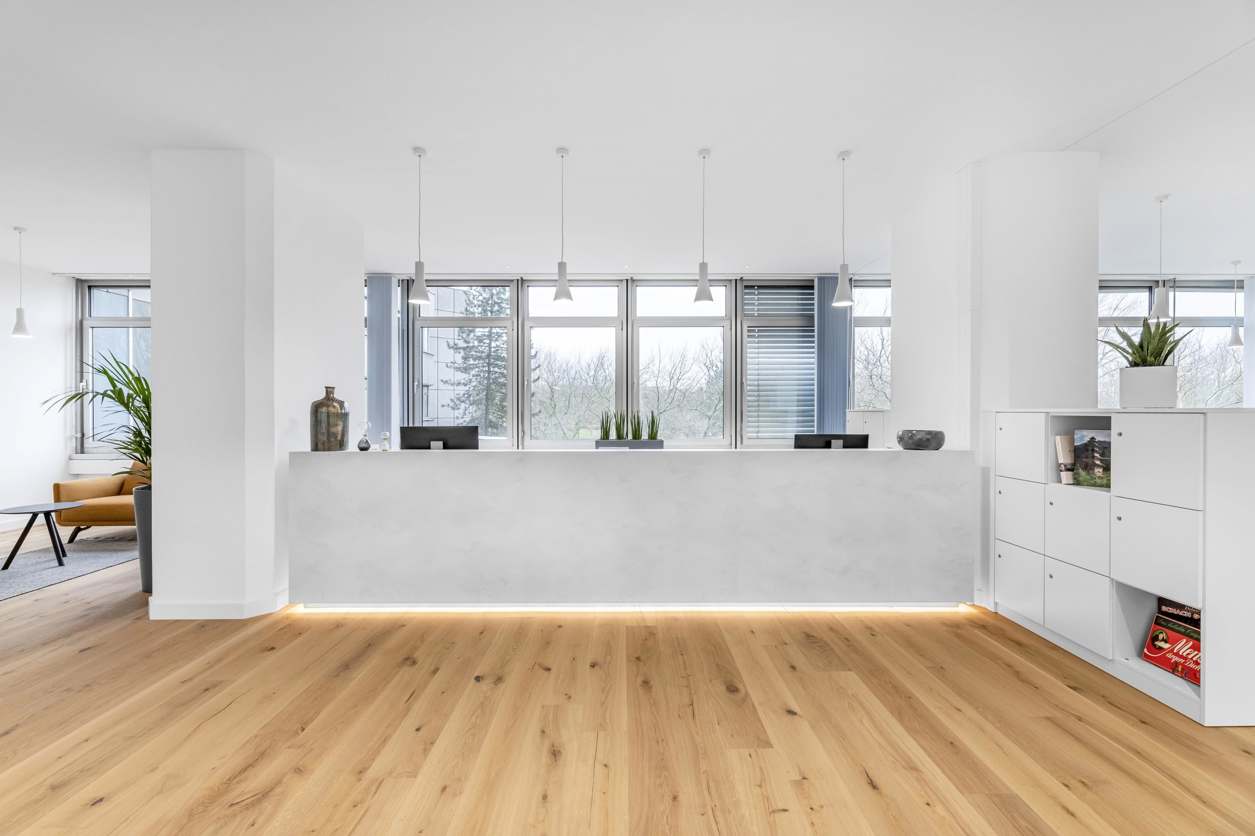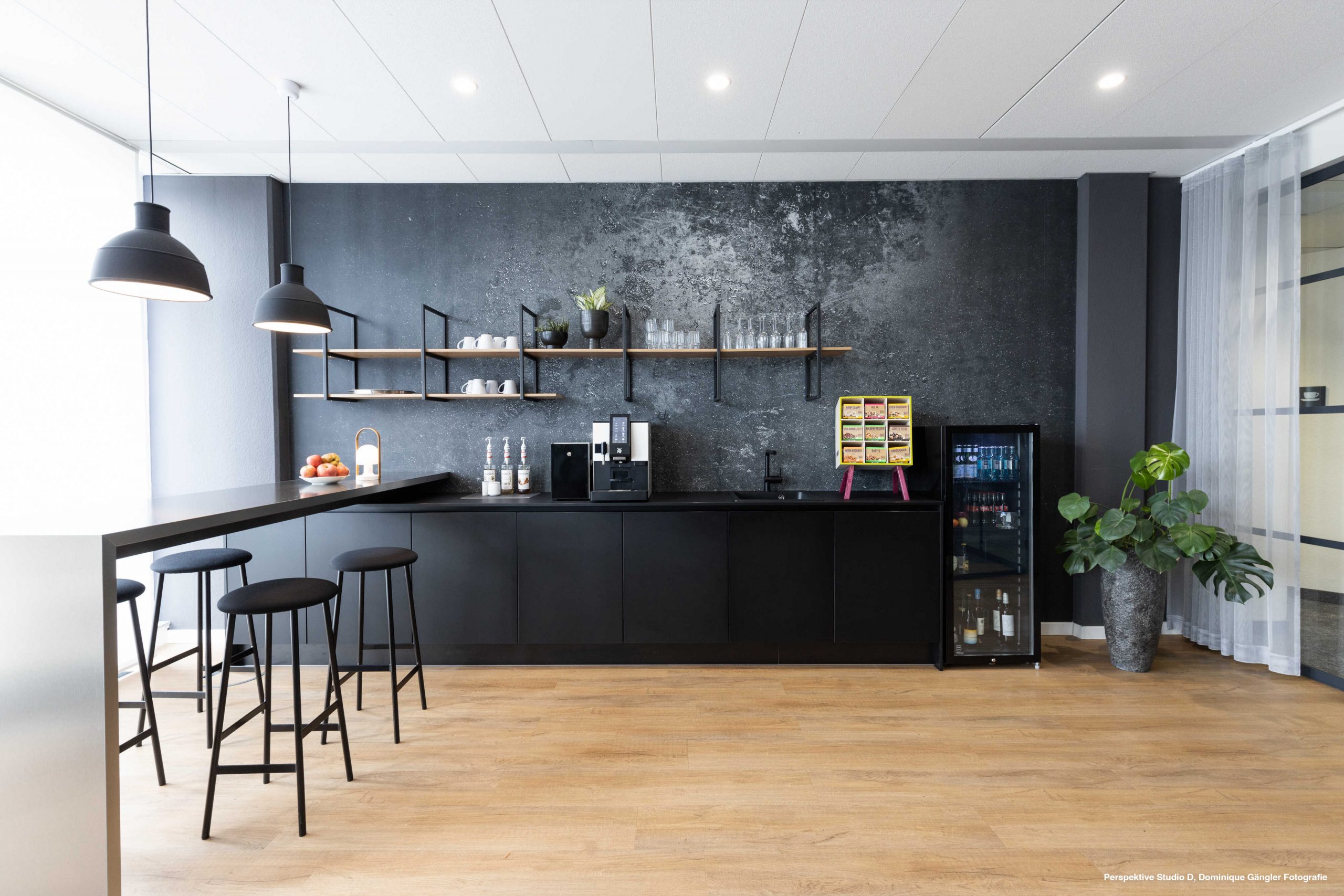 Hier sind Herglotz-Lösungen gefragt. Mit ausgesuchten Materialien, maßgefertigten Einbauten und hochwertigen Beschlägen: Repräsentativ am Empfang oder der Kaffeebar, funktional bei der Integration von technischen Einbauten.